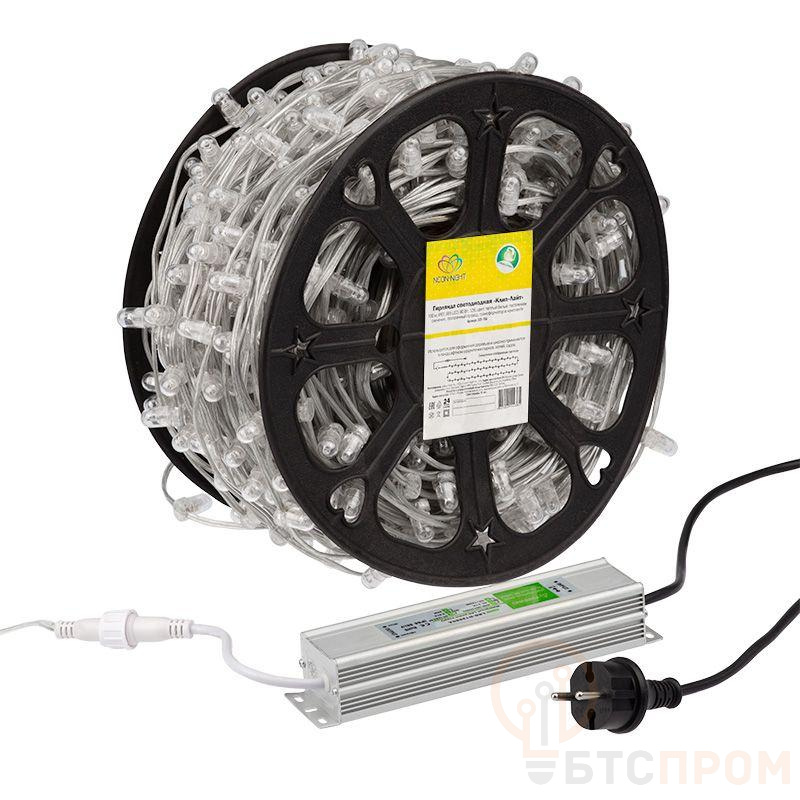 Гирлянда светодиодная "LED ClipLight" шаг 15см 665LED тепл. бел. 80Вт 12В IP65 провод ПВХ прозр. (уп.100м) Neon-Night 325-156