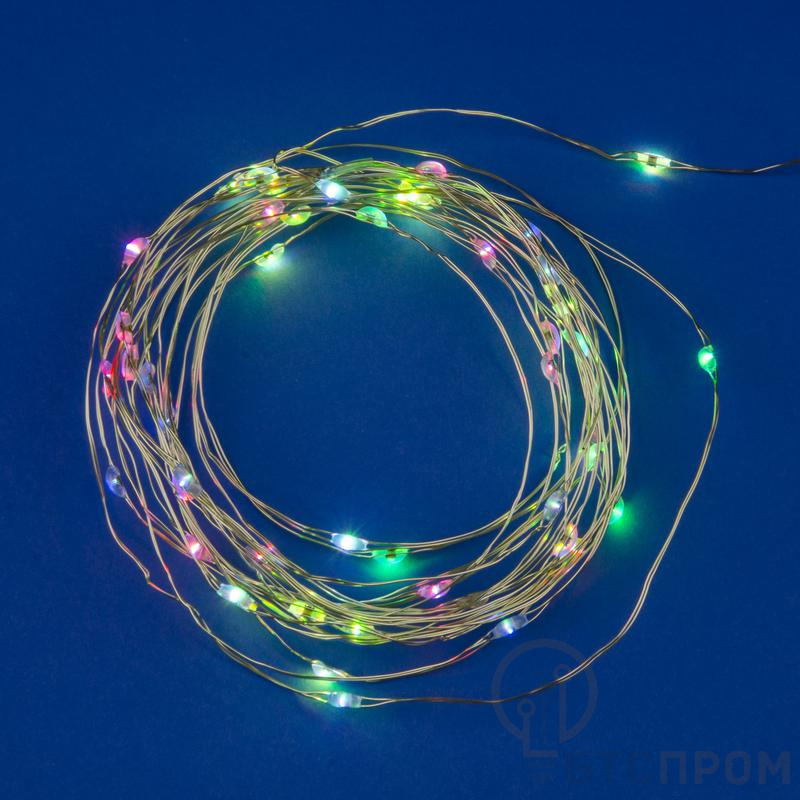Гирлянда LED на батарейках ULD-S0500-050/DTB/3AA/RC RGB IP20 (артикул UL-00007248). Беспроводная гирлянда длиной 5 метров с 50 RGB-диодами. Пульт ДУ в комплекте. Питание от 3АА.