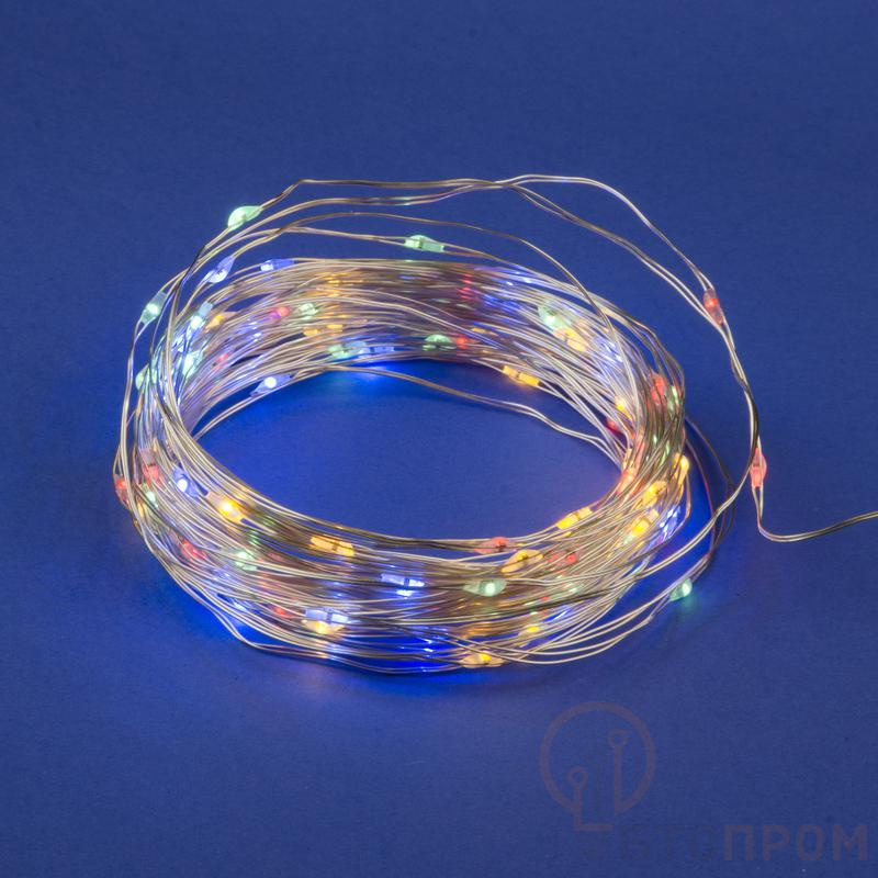 Гирлянда LED на батарейках ULD-S1000-100/SCB/3AA MULTI IP20 (артикул UL-00005483) длиной 10 метров со 100 разноцветными диодами. Питание от 3АА. Медный провод.
