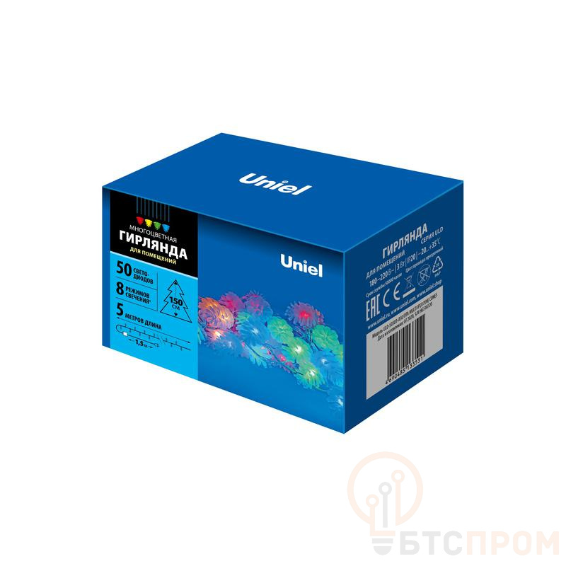 Гирлянда LED "Шишки" ULD-S0500-050/DTA MULTI IP20 PINE CONES 5м 50 диодов разноцвет. свет провод прозр. Uniel UL-00007193