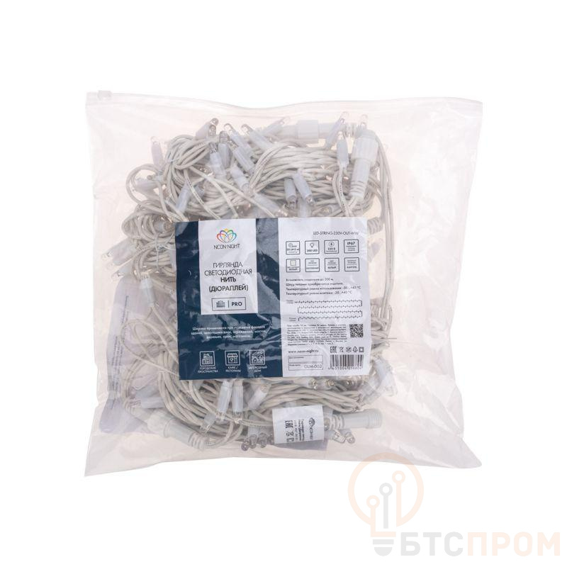 Гирлянда светодиодная "Нить" 20м 200LED бел. 18Вт 230В IP67 постоян. свечение провод каучук бел. (нужен шнур питания 315-001) Neon-Night 315-145