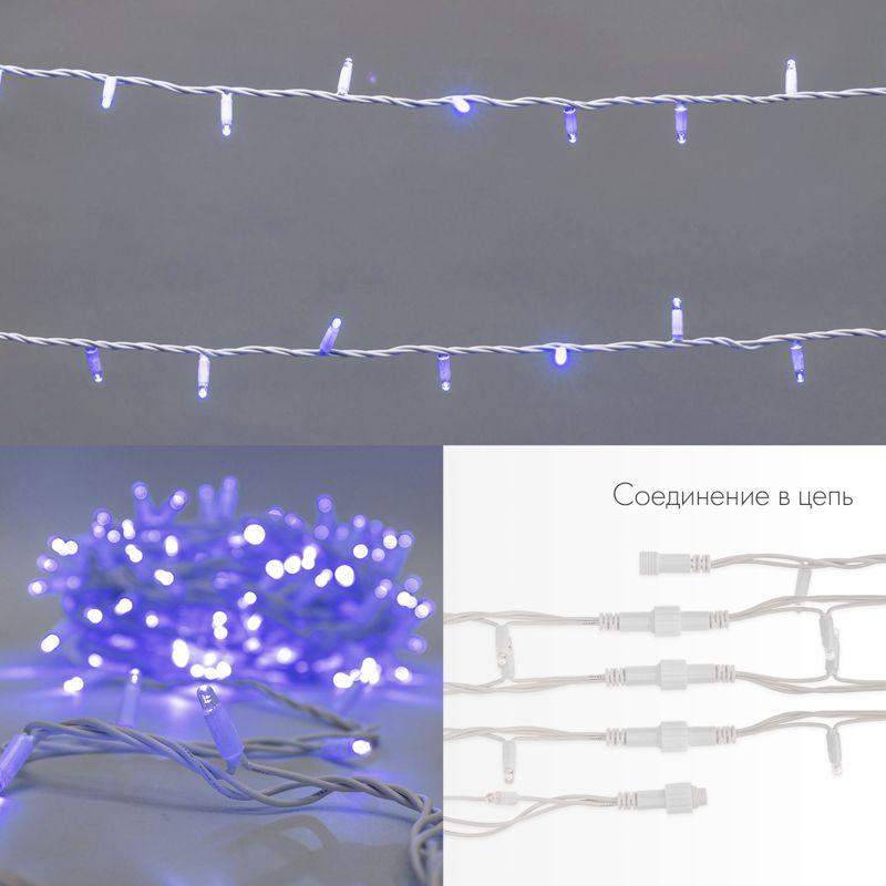 Гирлянда светодиодная "Нить" 20м 200LED син. 18Вт 230В IP67 постоян. свечение провод каучук бел. (нужен шнур питания 315-001) Neon-Night 315-143