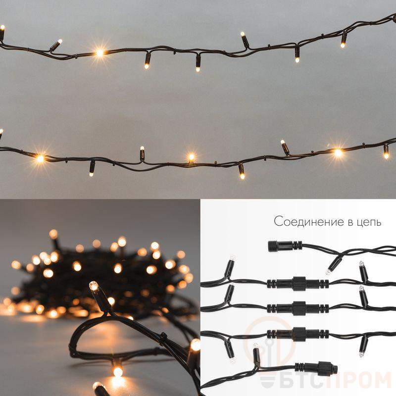 Гирлянда светодиодная "Нить" 20м 200LED желт. 18Вт 230В IP67 постоян. свечение провод каучук черн. (нужен шнур питания 315-000) Neon-Night 315-151