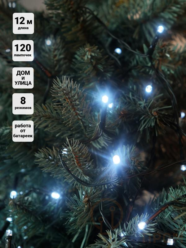 Гирлянда "Нить" LD120-GW-BO (артикул 4690601045430). Уличная гирлянда длиной 12 метров со 120 белыми светодиодами, оборудованная контроллером. Классика уличного декора.
