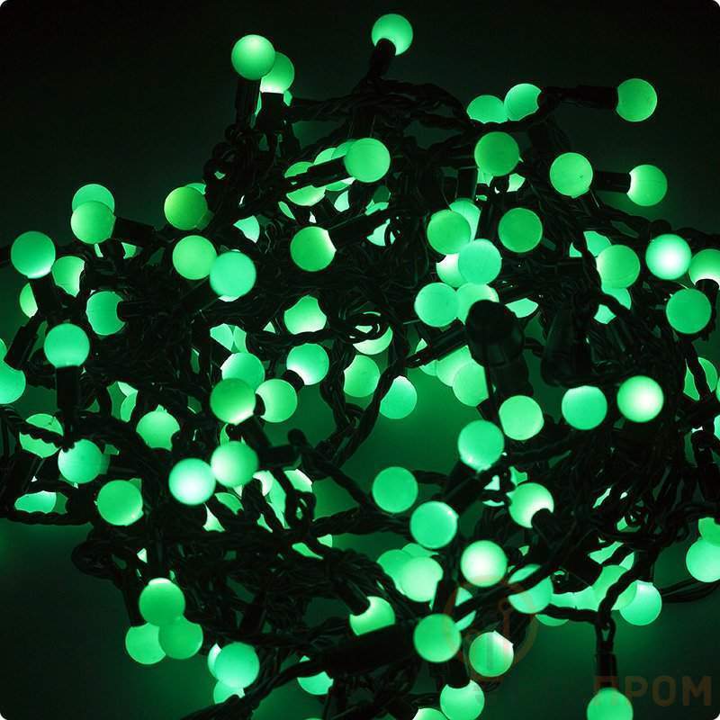 Данная гирлянда имеет зеленый цвет свечения светодиодов.