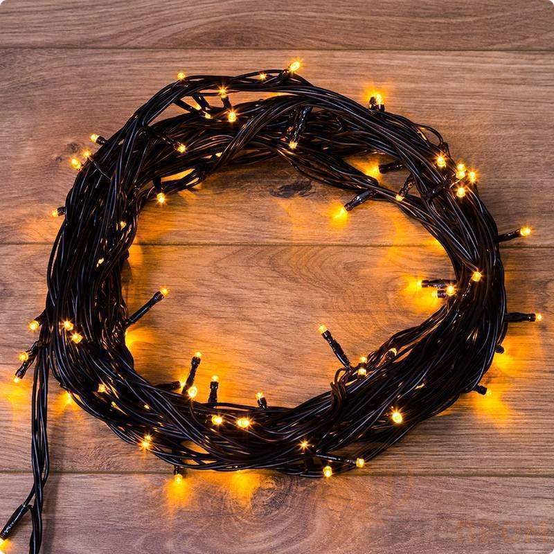 Гирлянда светодиодная "Твинкл Лайт" 10м 100LED оранж. 6Вт 230В IP65 с контроллером 8 режимов провод ПВХ черн. Neon-Night 303-151