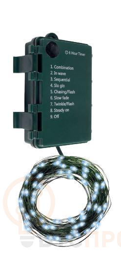 Гирлянда "Роса" DC-G06-50W (артикул 5059658) с 50 белыми микро-диодами. Батарейки в комплекте.