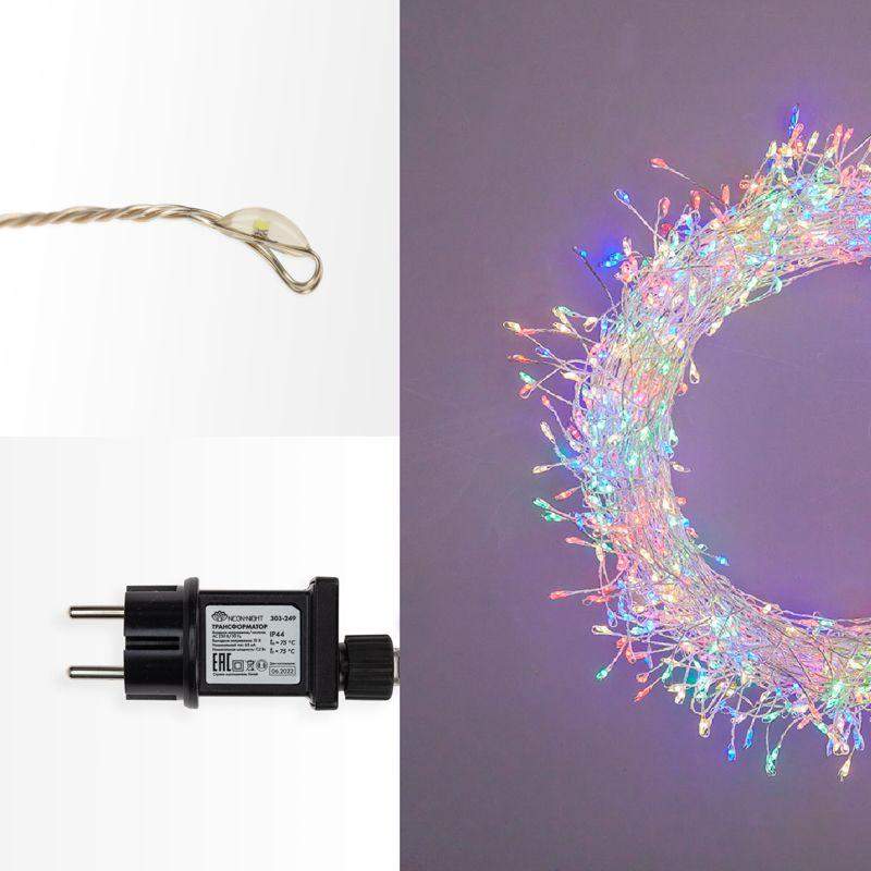 Гирлянда светодиодная "Роса "Фейерверк" 20м 1000LED мультиколор 10Вт IP44 трансф. в компл. Neon-Night 303-249