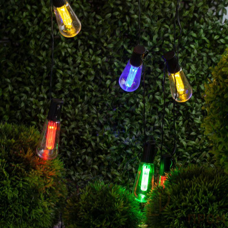 Садовая гирлянда ERAGS012-04 от торговой марки ЭРА состоит из разноцветных филаментных ретро лампочек. Такая гирлянда уличная станет прекрасным дополнением в освещении вашей дачной территории. Удобная конструкция и простой процесс сборки позволят Вам установить подсветку для сада среди цветов, необычно подсветить аллею, вход в дом, фасад здания или окно. Гирлянда функционирует на солнечной батарее. Такой тип получения энергии является самым экологичным, энергоемким, а также бесшумным. Питание происходит во включенном режиме, днем. С наступлением ночи лампочки загораются. Фигурки начинают светиться разноцветными цветами и освещают территорию или объект вокруг себя, создавая праздничную атмосферу. Работа от солнечной батареи рассчитана на 8 часов. 2 режима позволят настроить освещение в соответствии с личными предпочтениями. Высокая степень пыле и влагозащиты позволяет оставлять садовый светильник на улице в непогоду. Обращаем ваше внимание, что перед использованием фигурки гирлянду уличную декоративную необходимо включить и зарядить. Светильник заряжается в течение всего светового дня. Уличная гирлянда на солнечной батарее от компании ЭРА чудесный вариант для преображения площади сада.