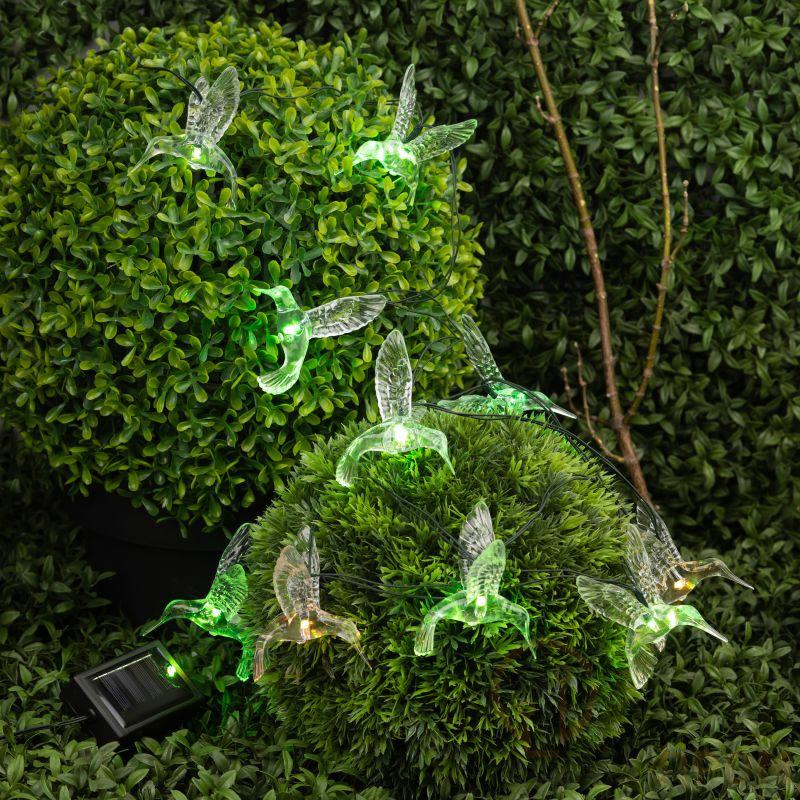 Садовая гирлянда ERASF22-26 "Колибри" 3.8 м от компании ЭРА станет оригинальным декором вашего загородного участка! Этот уличный светодиодный светильник добавит атмосферу праздничности и воздушности вашему саду - повесьте его на куст, подсветите ветви дерева или дверь в дом. Состоит из 10 прозрачных фигурок в виде колибри, подсвеченных светодиодами с разноцветным свечением. Гирлянда работает на солнечной батарее - этот тип получения энергии является наиболее экологичным, энергоемким, а также бесшумным. Питание происходит во включенном режиме, днем, а с наступлением ночи гирлянда автоматически включается и радует Вас до 8 часов своим свечением. 2 режима - постоянный и мигающий - можете менять под настроение. Садовый светильник можно оставлять на улице в непогоду, благодаря высокой степени пыле- и влагозащиты IP44. Уличная гирлянда на солнечной батарее от бренда ЭРА - выигрышный вариант для украшения территории сада.