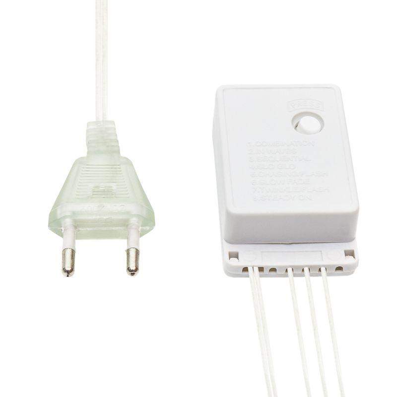 Гирлянда «Сеть» 1,5?1,5 м прекрасно подходит для декора оконных проемов. 96 светодиодов, излучающих ровный белый свет, расположены на одинаковом расстоянии. Воздушная сетка, в основе которой находится провод с прозрачной оболочкой из ПВХ, можно крепить при помощи крючков на присоске. Диапазон рабочих температур и защита IP20 предполагают использование в сухих отапливаемых помещениях. Контроллер с 8 режимами управляет красивыми динамическими эффектами.