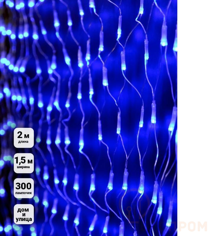 Гирлянда-сетка NTLD300-B-E 2х1.5м 300 светодиодов с доп. подключ. до 3 модулей IP44 син. SHLights 4610003328610