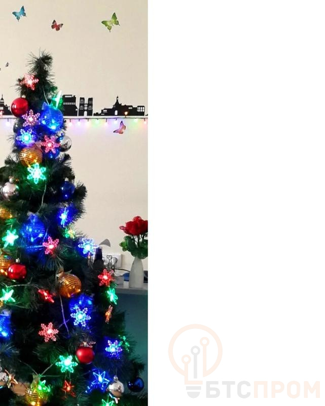 Гирлянда "Снежинки" прозрарчная, провод с разноцветными светодиодами, 30 снежинок, IP20, 3м.