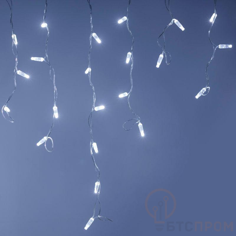 Светодиодная бахрома Classic. Размер 5600 мм (длина 5600 мм, по длине 48 нитей высотой 200/900 мм). Количество светодиодов 240 шт размером 7 мм. Цвет свечения БЕЛЫЙ (6400 К). Эффект медленного мерцания каждого светодиода с резким световым рисунком (прозрачная вогнутая линза). Провод черный, ПВХ. Питание 230 В, Мощность 6 Вт, защита IP65, применение на улице под навесом. Аксессуары для подключения приобретаются отдельно.
