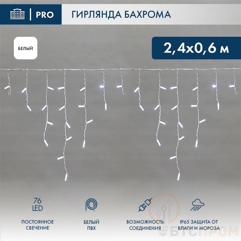 Гирлянда светодиодная "Айсикл" (бахрома) 2.4х0.6м 76LED бел. 7Вт 230В IP65 провод бел. (нужен шнур питания 303-500-1) Neon-Night 255-034-6