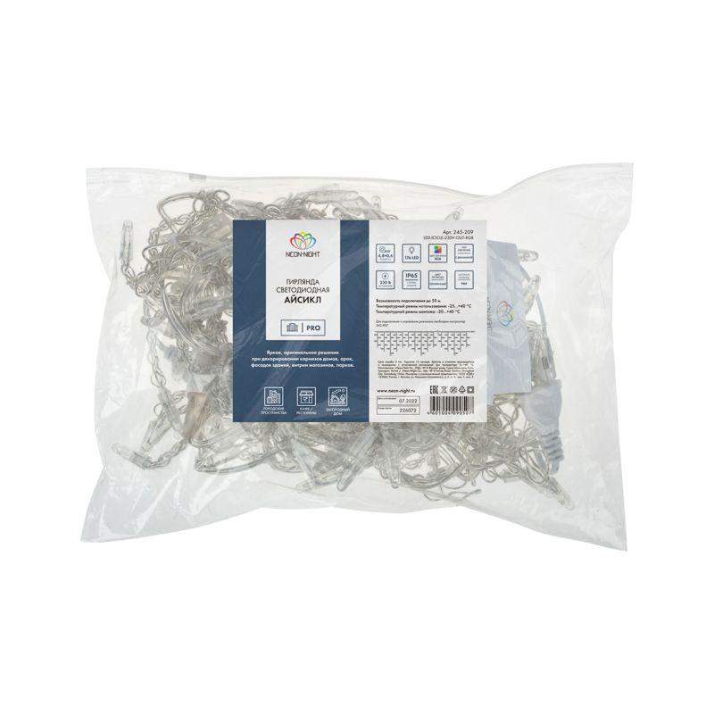 Гирлянда светодиодная "Айсикл" (бахрома) 4.8х0.6м 176LED RGB 19Вт 230В IP65 провод прозр. Neon-Night 245-209