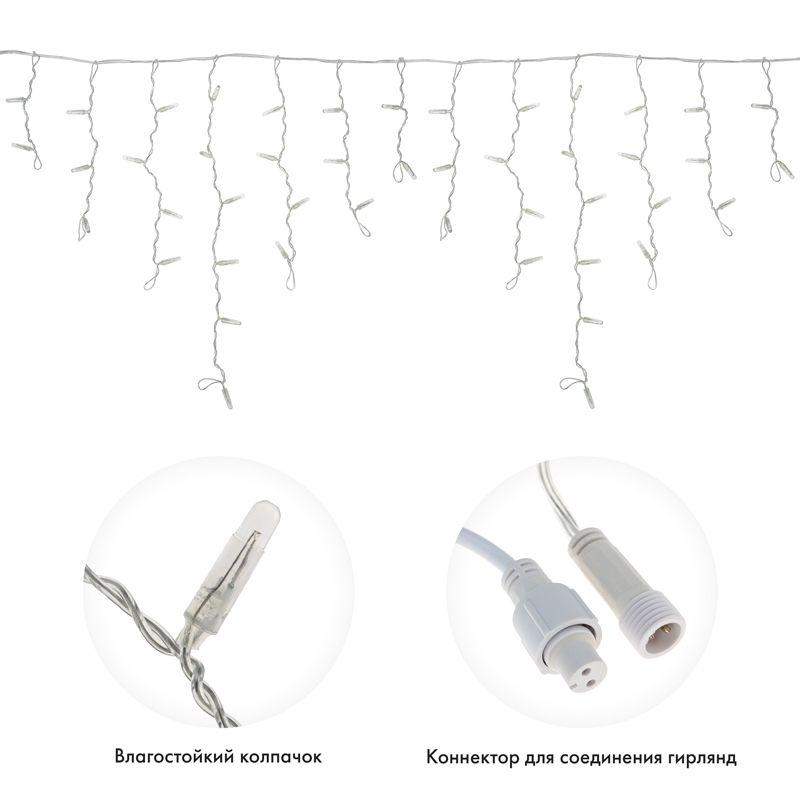 Гирлянда светодиодная "Айсикл" (бахрома) 4.8х0.6м 176LED тепл. бел. 15Вт 220-240В IP65 провод прозр. (нужен шнур питания 303-500-1) Neon-Night 255-146 фото в каталоге от BTSprom.by