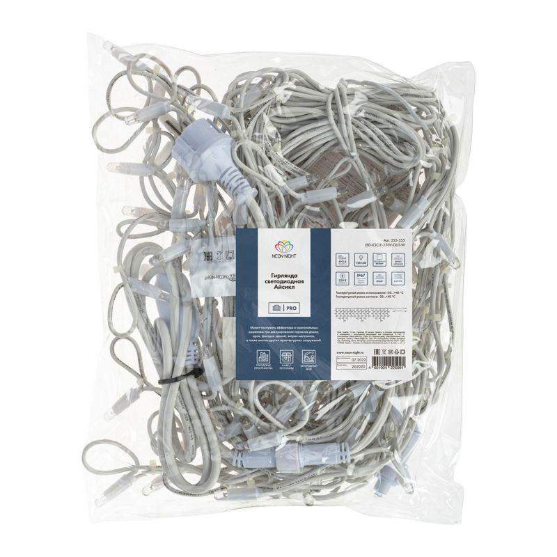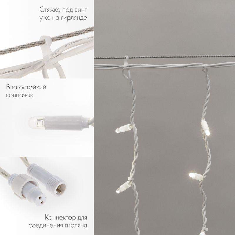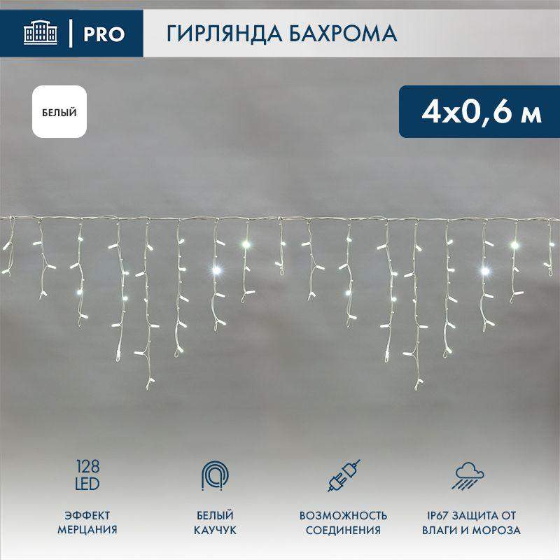 Гирлянда светодиодная "Айсикл" (бахрома) 4х0.6м 128LED бел. 10Вт 230В IP67 эффект мерцания провод каучук бел. (нужен шнур питания 315-001) Neon-Night 255-355