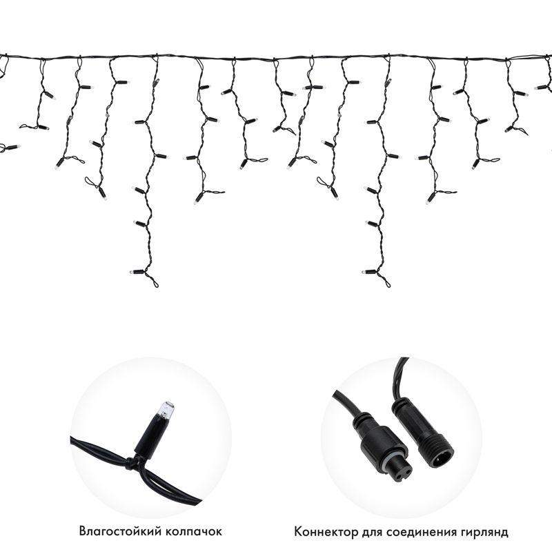 Гирлянда светодиодная "Айсикл" (бахрома) 4х0.6м 128LED син. 10Вт 230В IP67 провод каучук черн. Neon-Night 255-223