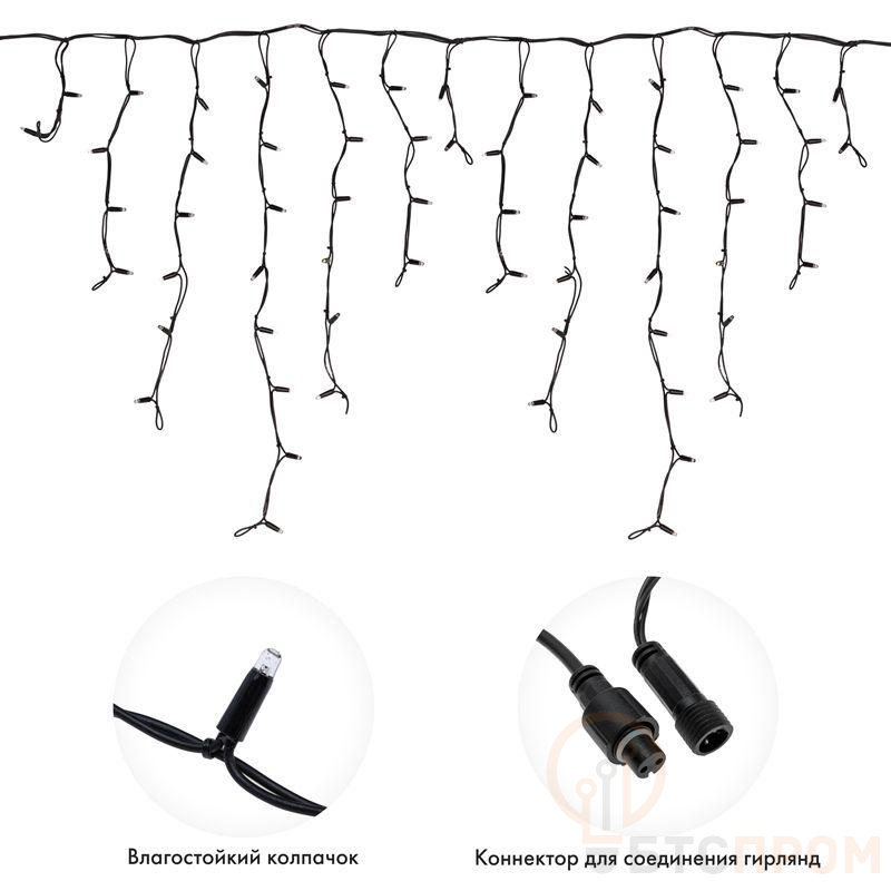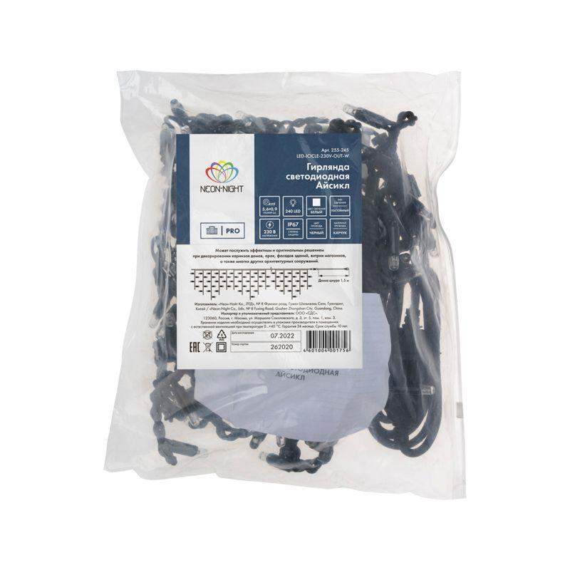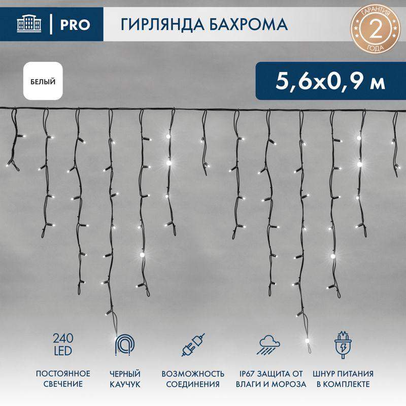 Гирлянда светодиодная "Айсикл" (бахрома) 5.6х0.9м 240LED бел. 16Вт 230В IP67 провод каучук черн. Neon-Night 255-245