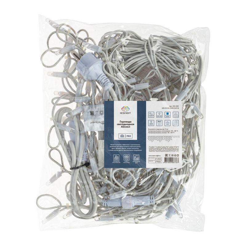 Гирлянда светодиодная "Айсикл" (бахрома) 5.6х0.9м 240LED син. 16Вт 230В IP67 провод каучук бел. Neon-Night 255-283