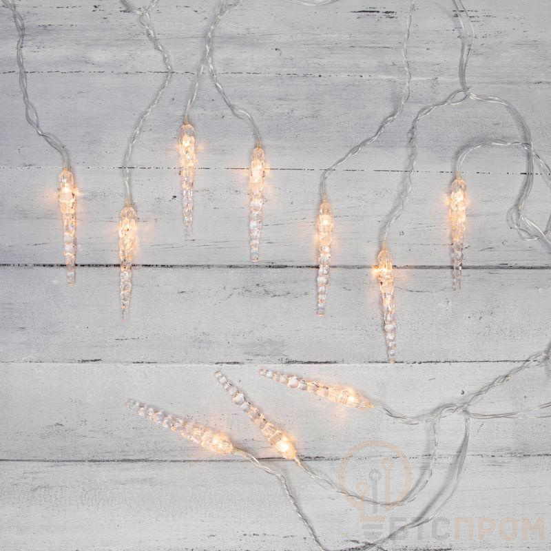 Гирлянда светодиодная "Айсикл" (бахрома) "Сосульки" 1.5х0.25м 10LED тепл. бел. 0.51Вт IP20 провод прозр. Neon-Night 303-067