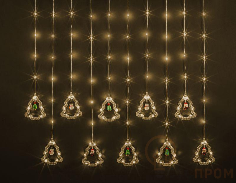 Гирлянда "Бахрома" "Елки и фигурки" (артикул 95007) модели NGF-D034-01. Размер 3х0.6 метра. Теплый белый свет (WW). IP20. Насадки в виде елок и других фигурок.
