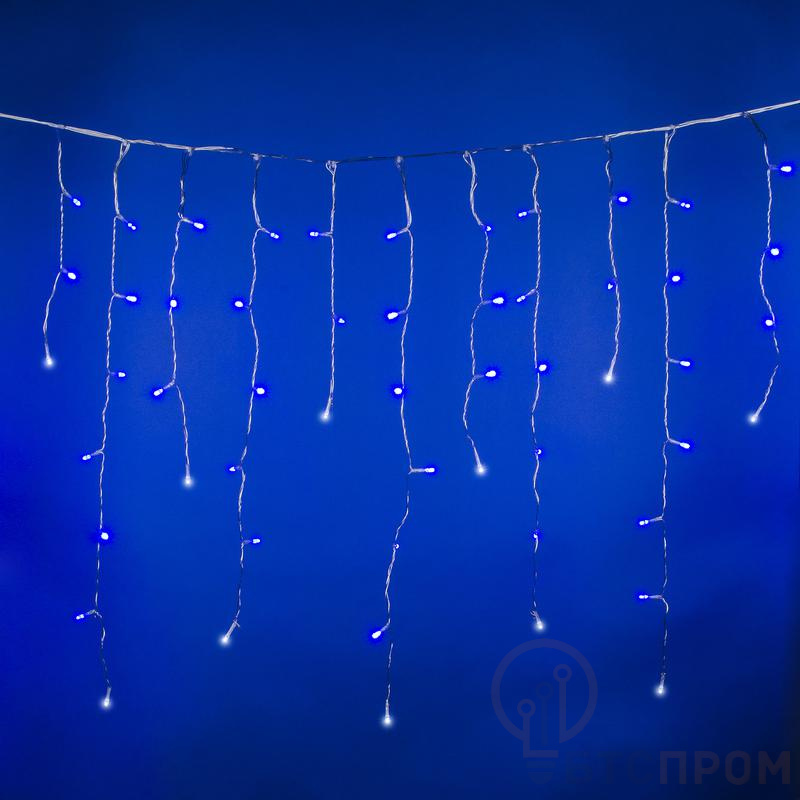 Гирлянда светодиодная "Бахрома" ULD-B3007-200/TTK BLUE-WHITE IP44 3м 200LED син./бел. с эффектом мерцания соединяемая провод прозр. Uniel UL-00007210