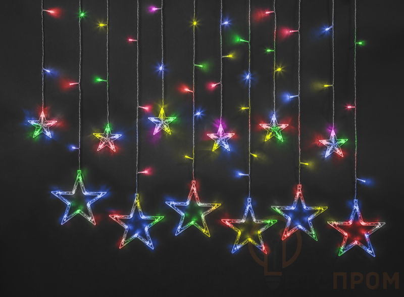 Гирлянда "Бахрома" "Звезды" (артикул 93678) модели NGF-D025-01. Размер 2.5х1 метр. 138 светодиодов многоцветных RGBY. IP20. Прозрачный провод (TR).