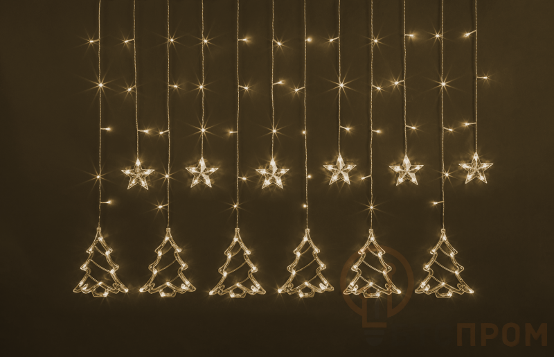 Гирлянда "Бахрома" "Звезды и елочки" (артикул 95006) модели NGF-D033-01. Размер 2.5х1 метр. Теплый белый свет. IP20.