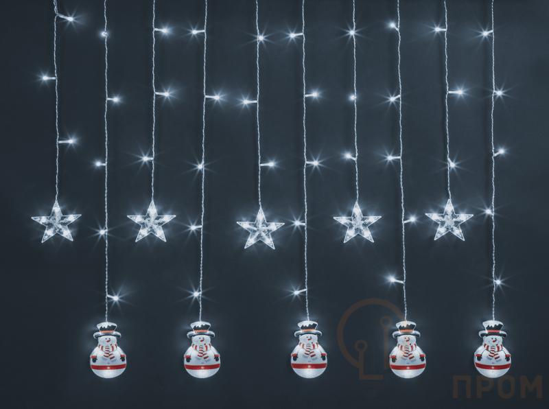 Гирлянда "Бахрома" "Звезды и снеговики" (артикул 95025) модели NGF-D037-02. Холодный белый свет.