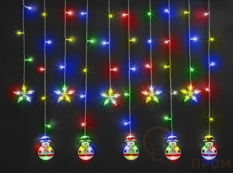 Гирлянда "Бахрома" "Звезды и снеговики" (артикул 95026) модели NGF-D037-03. Многоцветное свечение RGBY.