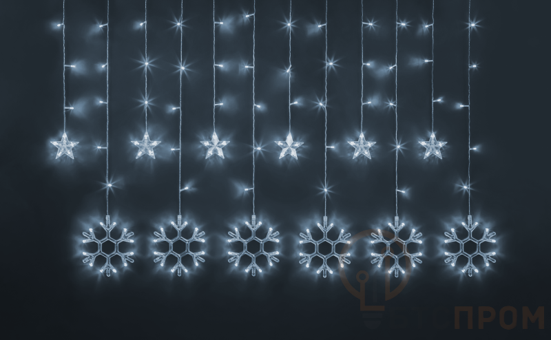 Гирлянда "Бахрома" "Звезды и снежинки" (артикул 95121) модели NGF-D032-02. Холодный белый свет.