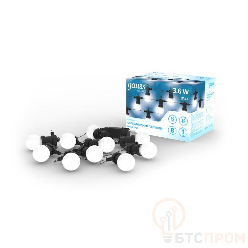 Светодиодные лампы «Белт-лайт» от Gauss – гирлянды с белой матовой колбой диаметром 50 миллиметров. В одной упаковке 10 ламп с ярким насыщенным светом. Поверхность колбы защищена от механических напряжений и перепадов температур, что дает возможность использовать белт-лайт и на улице. Приятное равномерное свечение по всем периметру расположения гирлянды обеспечено за счет матового покрытия. Эта модель излучает красивый белый свет. Ее можно использовать для свадебной подсветки или освещения дачных участков. Создайте праздничную атмосферу вместе с Gauss.