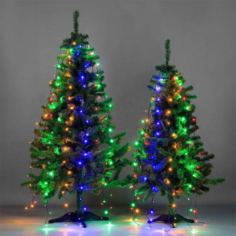 Елочная гирлянда с кольцом и 7 нитями по 1,8 м питается от электросети с напряжением 230 Вольт через трехметровый кабель. Штепсельная вилка совместима со всеми розетками. Гирлянда предназначена для украшения новогодних елок в интерьере. В конструкции 126 диодов, светящихся синим, зеленым, красным и желтым цветами. Главное преимущество изделия — простота использования: достаточно надеть кольцо на вершину ели и расправить нити — оригинальный праздничный декор готов. Диоды не нагреваются и подходят для оформления искусственных деревьев. Контроллер с 8 режимами позволяет менять динамику свечения в соответствии с обстановкой.