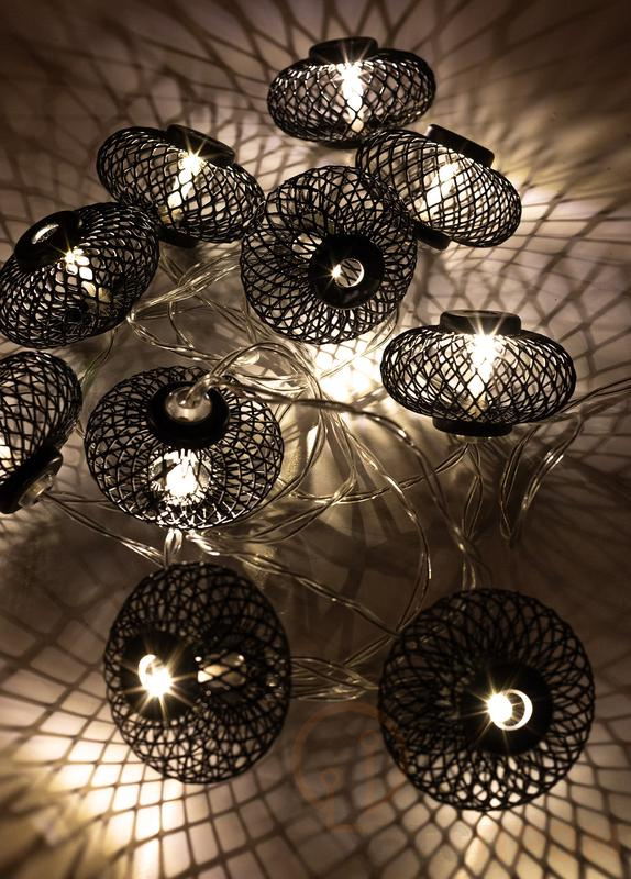 Интерьерная гирлянда из 10 металлических сетчатых черных фонариков KOC_GIR-B119 теплый белый свет. Длина светящейся части 1,8 метров +0,3м. Фонарики украсят детскую, гостиную, спальную, так же придаст уют и тепло рабочему месту, создадут атмосферу волшебства и помогут удивить гостей! Гирлянда станет изюминкой на любом праздничном мероприятии или выездной фотосессии и свадьбы. Используйте ее, где захотите, даже если поблизости нет розетки или удлинителя. Может служить как дополнительный источник света. Размер фонариков 5х5х3см. Работает от батареек 2*АА