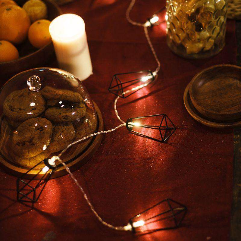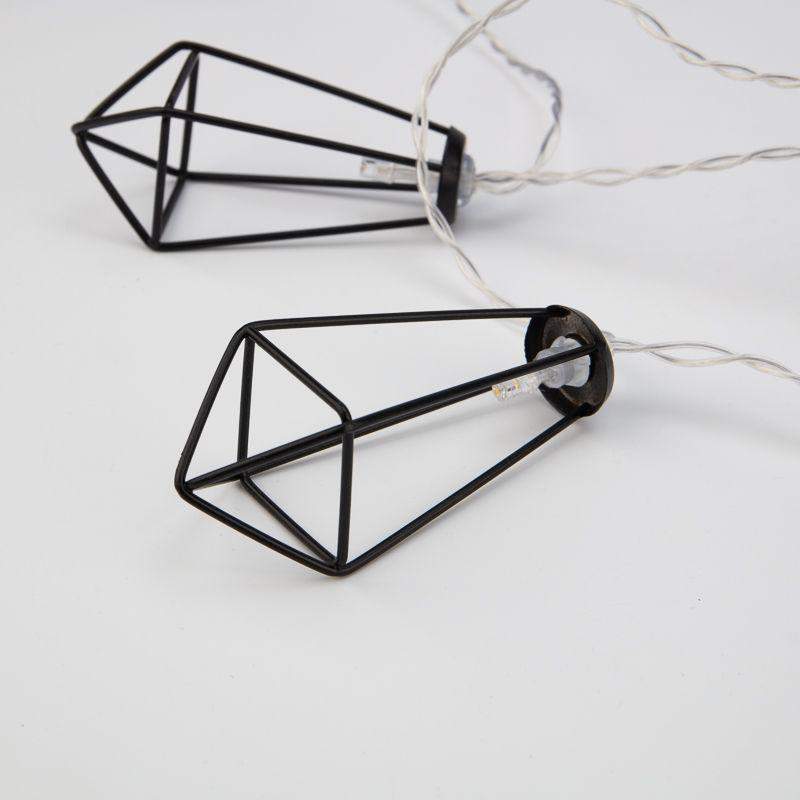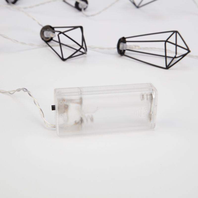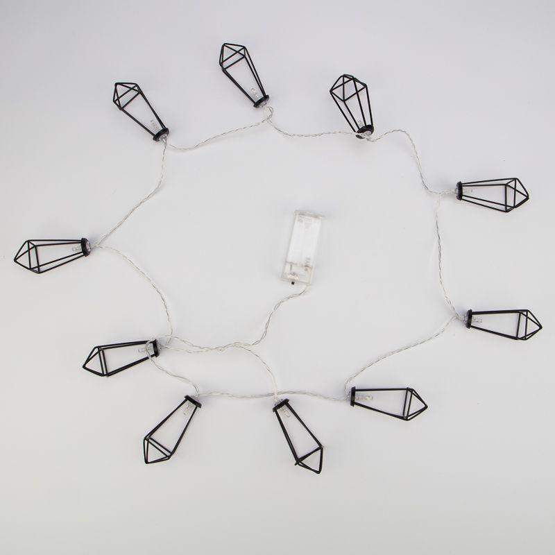 Светодиодная гирлянда «Кристаллы» длиной 1,5 метра — современный, стильный световой декор, который великолепно смотрится в интерьере и неизменно притягивает взгляды окружающих. 10 насадок в виде черных кристаллов подсвечиваются экономичными диодами. Теплый белый свет мягко рассеивается в металлическом корпусе стилизованного кристалла. Гирлянда питается от двух батареек АА и станет оригинальным акцентом, не требующим присутствия электрической розетки. Изделие на батарейках — удобный и, главное, безопасный вариант для украшения.