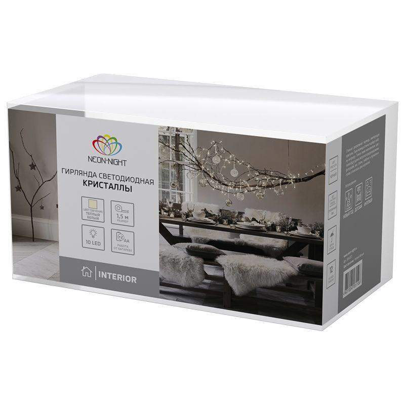 Гирлянда светодиодная "Кристаллы черные" 1.5м 10LED тепл. бел. 0.1Вт IP20 провод ПВХ прозр. элементы питания 2хAA (не в компл.) Neon-Night 304-017