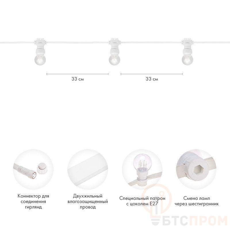 Гирлянда светодиодная "LED Galaxy Bulb String" 10м 6х30LED бел. 25Вт IP65 провод каучук бел. Neon-Night 331-305