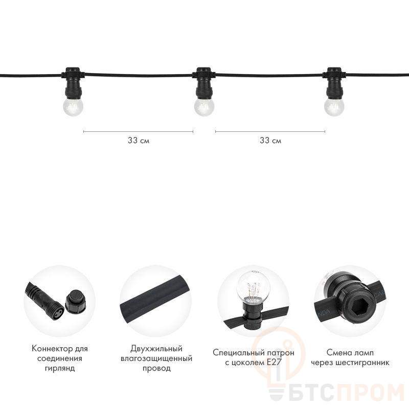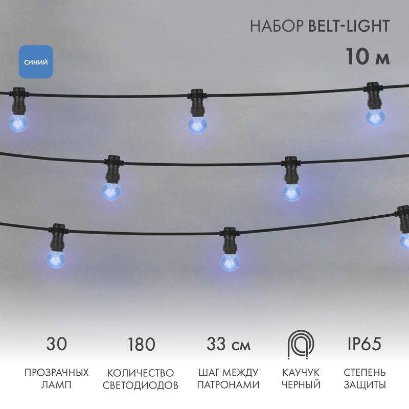 Гирлянда светодиодная "LED Galaxy Bulb String" 10м 6х30LED син. 25Вт IP65 соединяемая провод каучук черн. Neon-Night 331-323