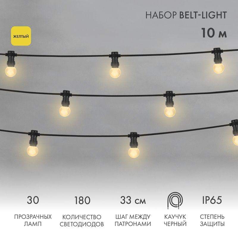 Гирлянда LED Galaхy Bulb String готова к использованию прямо из коробки. Вам не нужно вкручивать каждую лампочку в отдельный патрон и соединять фрагменты вручную: 30 светодиодных ламп желтого свечения уже установлены в гирлянду Белт-лайт. Украшение состоит из 10-метрового кабеля в изоляционной каучуковой оболочке черного цвета и штепсельной вилки. Защита IP65 исключает повреждение из-за попадания воды или пыли, поэтому продукт можно размещать как дома, так и на улице. Лампы с диаметром 4,5 см содержат по 6 ярких диодов. Гирлянда работает от стандартной сети 230 Вольт.