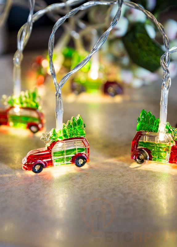 Интерьерная гирлянда "Машинки" KOC_GIR-B116. На гирлянде 10 цветных плоских машинок с елкой на крыше 3х4х1см. Гирлянда особенно подойдет для новогоднего украшения интерьера если в доме есть дети. Используйте гирлянду как ночник с дополнительным источником теплого мягкого света. Тем более, что для этого не нужна розетка и удлинитель. Работает от батареек АА