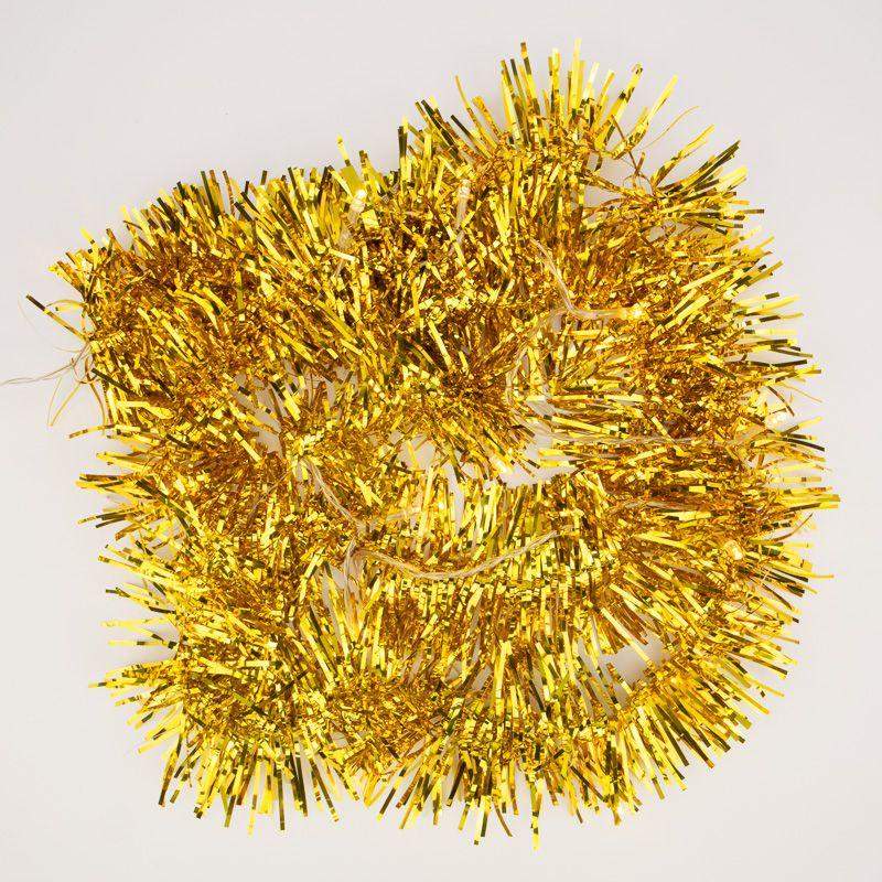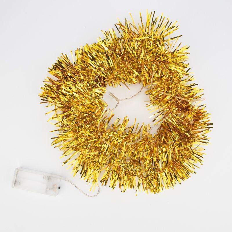 Светодиодная гирлянда «Мишура» длиной 1,5 метра выполнена из серебристого кабеля в изоляционной оболочке из прозрачного ПВХ. Гирлянда выполнена в виде привычной золотистой мишуры и дополнена 10 светодиодами, которые излучают ровный теплый белый свет, питаясь от двух батареек типа АА. Изделие способно создать гармоничный интерьерный акцент даже в выключенном состоянии благодаря эффектному дизайну.