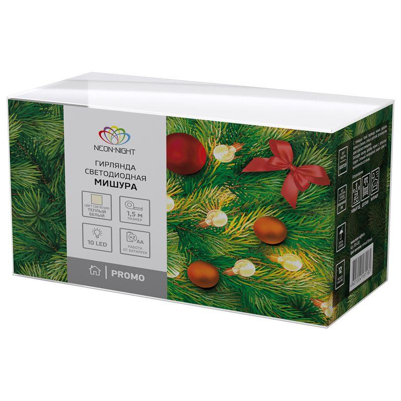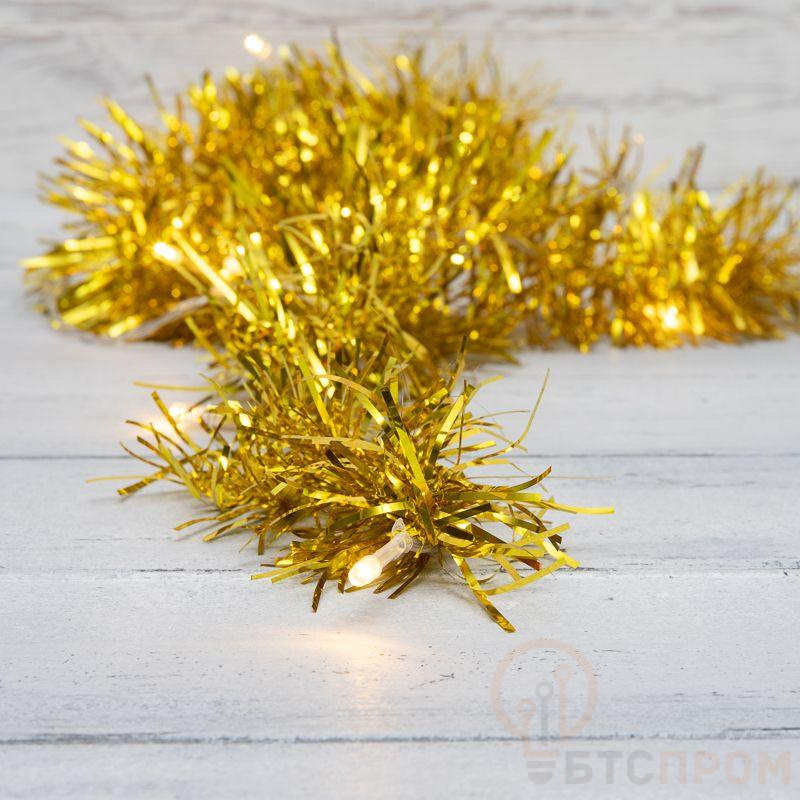 Гирлянда светодиодная "Мишура" 1.5м 10LED зол. тепл. бел. 0.1Вт IP20 провод ПВХ прозр. элементы питания 2хAA (не в компл.) Neon-Night 304-012