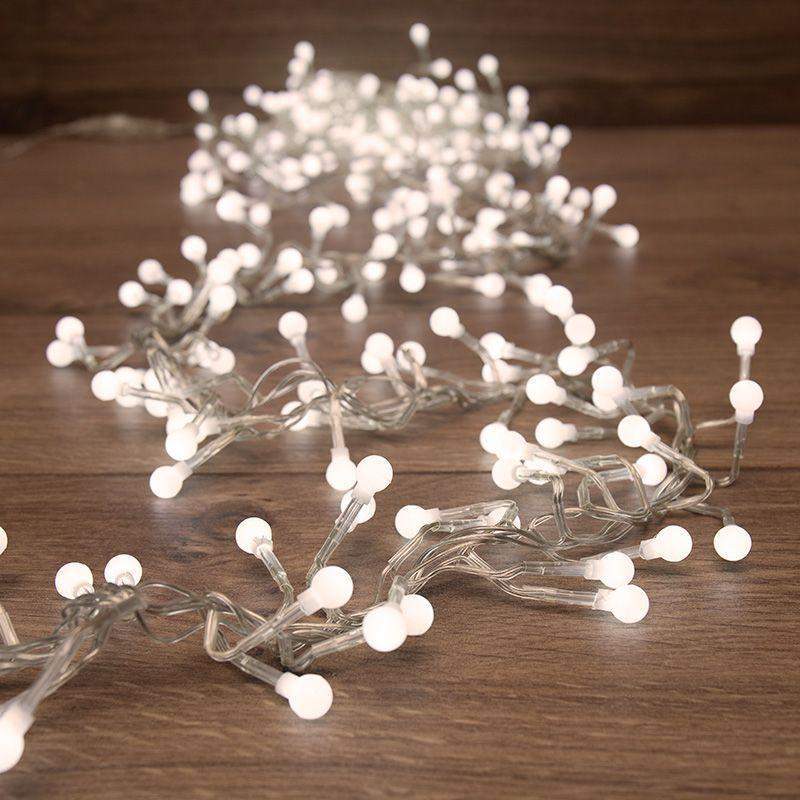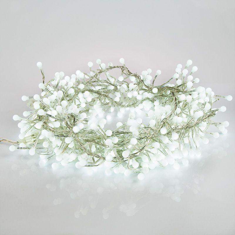 Гирлянда «Мишура» длиной 3 метра выполнена в виде объемной пушистой елочной мишуры. На концах многочисленных отводов расположены пластиковые шарики диаметром 1 см, внутри которых находятся светодиоды. Всего в изделии 288 диодов, излучающих белый свет нейтрального оттенка. Серебристый провод покрыт изоляцией из прозрачного ПВХ. Есть возможность собрать украшение длиной до 60 метров, соединив несколько гирлянд при помощи удобного разъема. Для подключения к электросети предусмотрен трехметровый кабель с контроллером. Устройство управления имеет 8 предустановленных режимов свечения с разной динамикой.