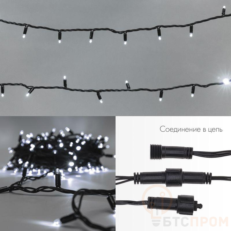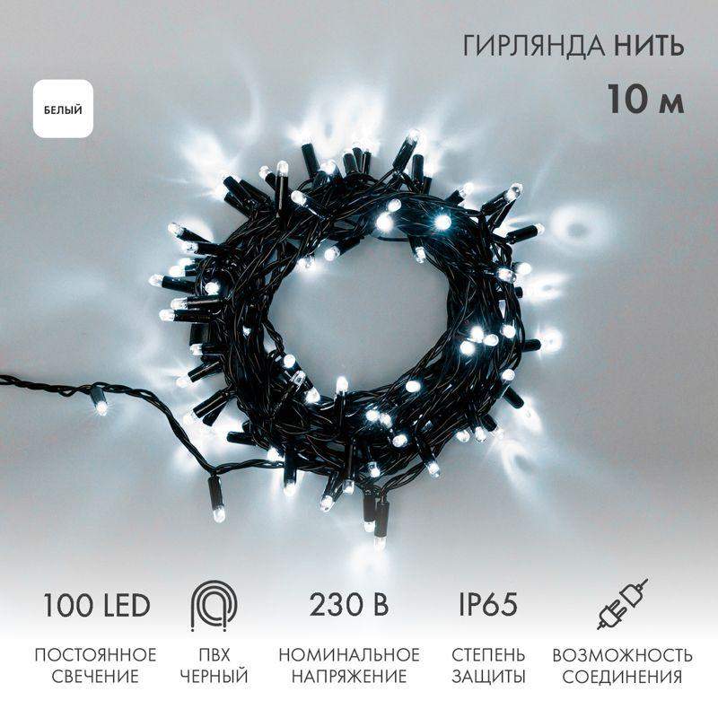 Гирлянда светодиодная "Нить" 10м 100LED бел. 10Вт 230В IP65 постоян. свечение провод ПВХ черн. (нужен шнур питания 303-500) Neon-Night 305-175