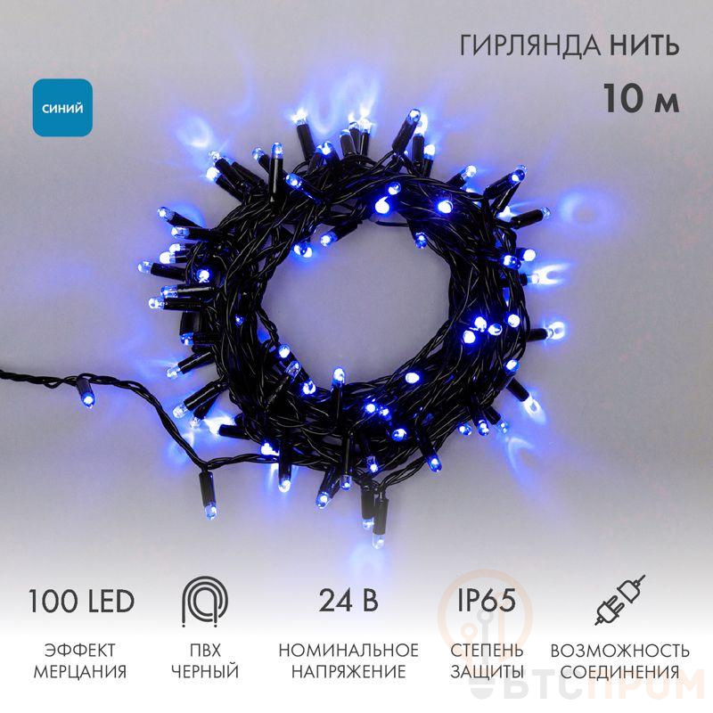 Гирлянда светодиодная "Нить" 10м 100LED син. 12Вт 24В IP65 эффект мерцания провод ПВХ черн. Neon-Night 305-243