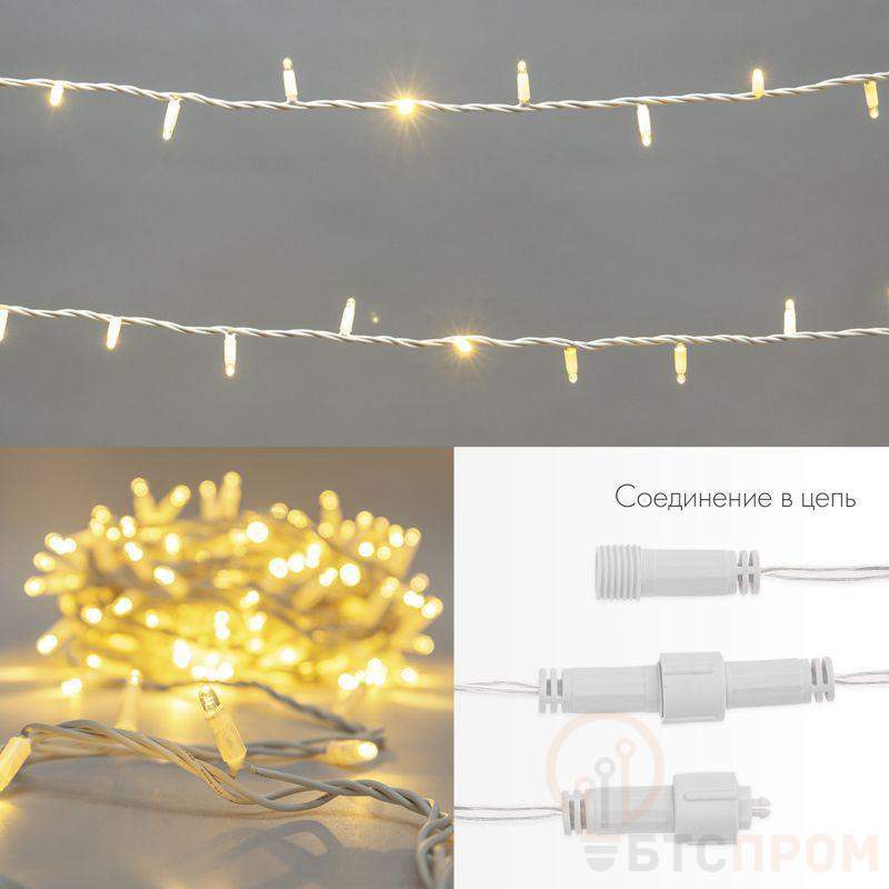 Гирлянда светодиодная "Нить" 10м 100LED тепл. бел. 12Вт 24В IP65 эффект мерцания провод ПВХ бел. Neon-Night 305-236
