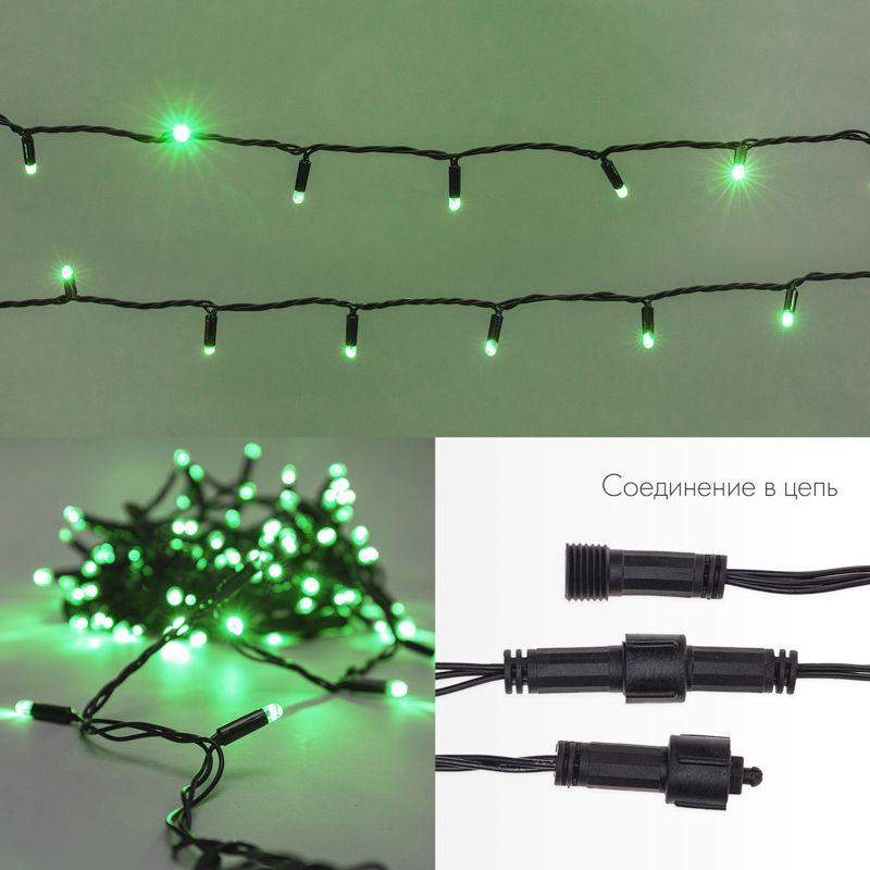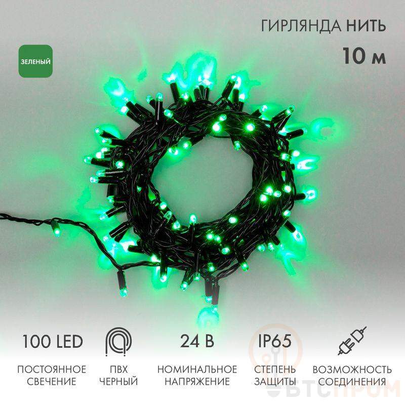 Гирлянда светодиодная "Нить" 10м 100LED зел. 12Вт 24В IP65 постоян. свечение провод ПВХ черн. Neon-Night 305-144
