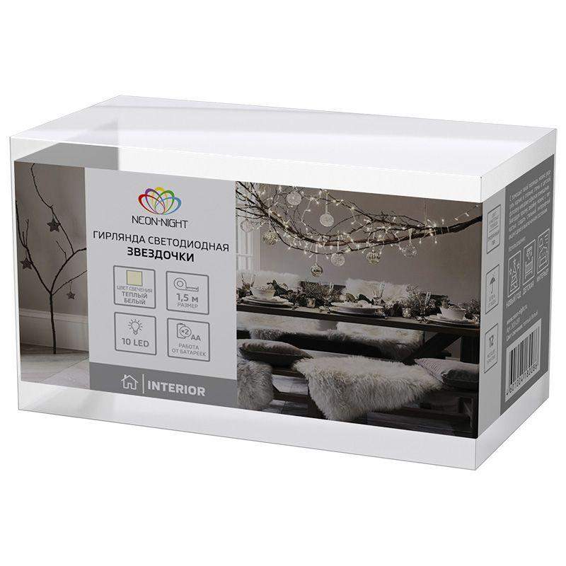 Гирлянда светодиодная "Прищепки" 1.5м 10LED тепл. бел. 0.1Вт IP20 провод ПВХ прозр. элементы питания 2хAA (не в компл.) Neon-Night 304-005
